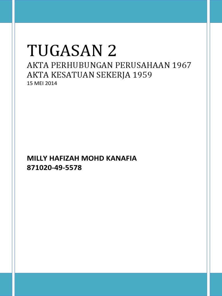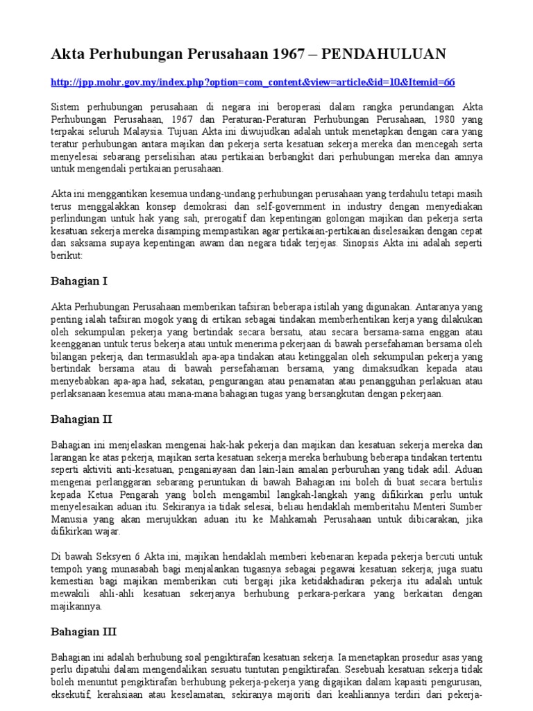 Buruh utama yang mengawal selia perhubungan serta mengekalkan keharmonian industri antara majikan, pekerja dan kesatuan sekerja di sektor swasta. Alat alat musik tradisional di malaysia. Akta mutu alam sekitar 1974. 10 november 2019 17:51 diperbarui: Akta perhubungan industri 1967 pdf file.