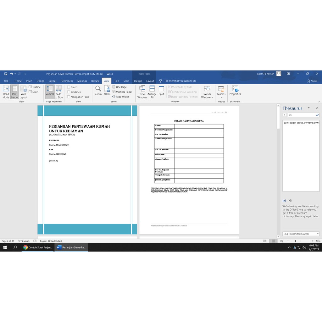 Perjanjian Sewa Rumah Dalam Word Malaysia - Pemegang kartu tanda penduduk nomor: