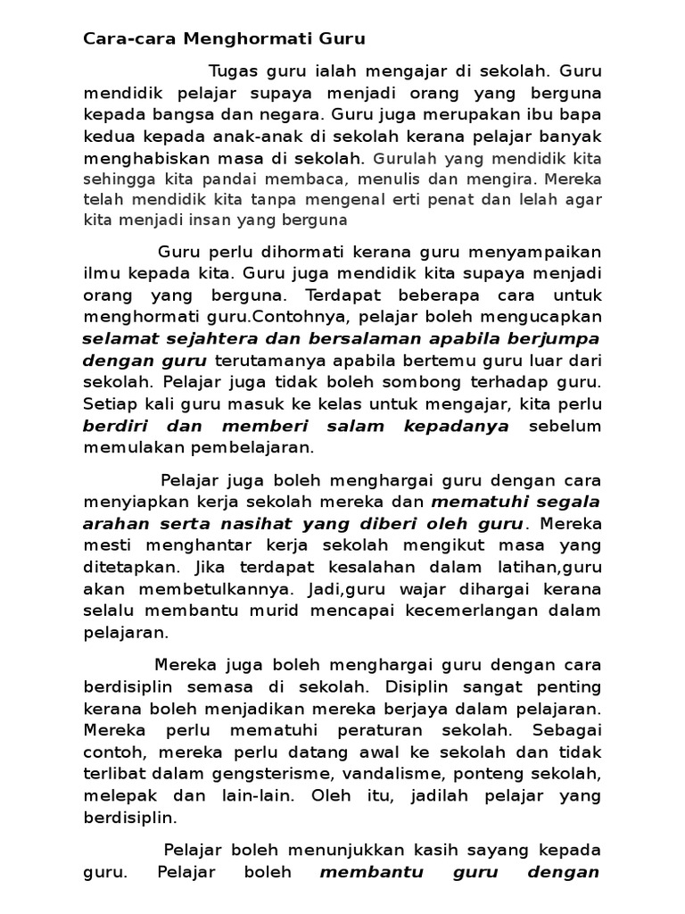 Tanpa usaha dan pengorbanan guru tidak mungkin pelajar mencapai kejayaan yang cemerlang lantaran itu. Adapun cara siswa menghargai dan menghormati guru : Upacara tersebut dilaksanakan sebagai bentuk penghormatan terhadap jasa pahlawan dan mengenang pertempuran 10 november di surabaya. Karangan cara menghargai jasa guru via scribd contoh karangan cara cara menghormati guru world globe via worldglobeshere karangan cara membalas jasa ibu bapa via planetfilez.org nota2 bm via slideshare koleksi kad ucapan selamat hari guru 2013 menarik via melvister random image. Menghargai orang lain berarti tidak merendahkan derajatnya di depan umum.