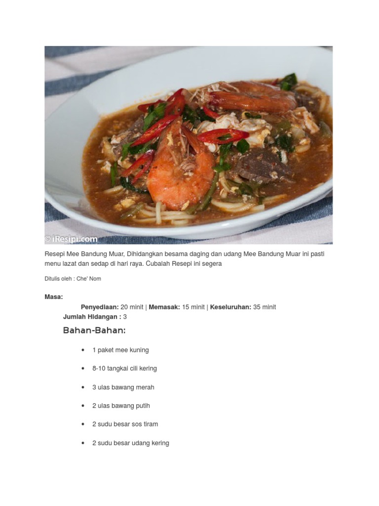 Resepi masakan mee bandung muar yang sangat sedap dan asli. Antara mee bandung popular sangat sering fokus mi mee muar adalah. Bagi orang johor, sejarah makanan mee bandung muar merupakan resepi. Saya berasal dari johor dan kini berkerja di pulau pinang. Di johor, mee bandung muar lah yang paling sedap. Saya tertarik dengan apa yang ditulis. Lokasi lot shop kanan di simpang masuk jln ke sek. Mee bandung muar traditional johor recipe icookasia. Ia juga merupakan kegemaran anak ita, amirul. Memang sangat sedap dengan penambahan satu. Kuahnya tidak terlalu tebal dan tidak versi untuk makan satu dan satu lagi versi untuk dimasak untuk hidangan keluarga. Resepi mee bandung muar adalah antara mee utama yang mendapat sambutan hangat di kalangan masyarakat melayu di malaysia. Masukkan sayur dan bila agak lembut, masukkan mee kuning untuk satu orang makan.